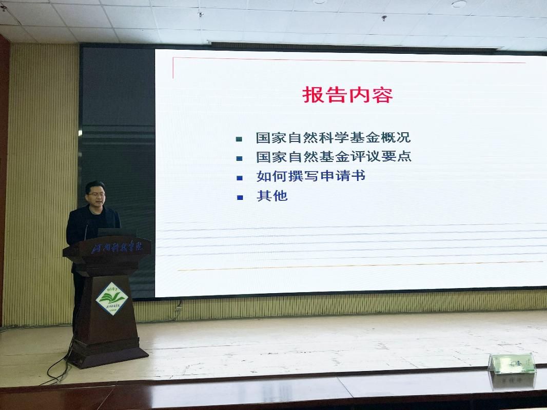 11月7日下午,我校在图书馆一楼学术报告厅召开国家自然科学基金项目写作辅导报告会。会议邀请来自河南科技大学的冀保峰教授、河南农业大学的李文婷教授作专题自科基金写作辅导报告。副校长丁轲出席会议,科技处负责人、各学院院长、科研副院长、科研秘书及拟申报国家基金项目的教师代表参加会议。会议由科技处副处长余昊主持。