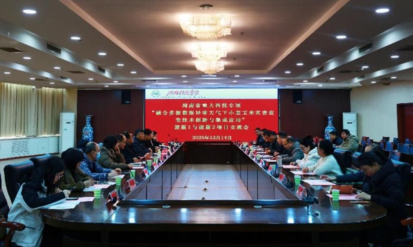2025年12月14日下午,河南省重大科技专项“融合多源数据异常天气下小麦玉米灾害应变技术创新与集成应用”推进交流会在我校行政楼206会议室举行。副校长丁轲,项目首席、河南农业大学教授杨青华,各课题负责人和项目骨干等三十余人出席会议。会议由课题2负责人、我校科技处处长/植物保护与环境学院院长刘润强主持。