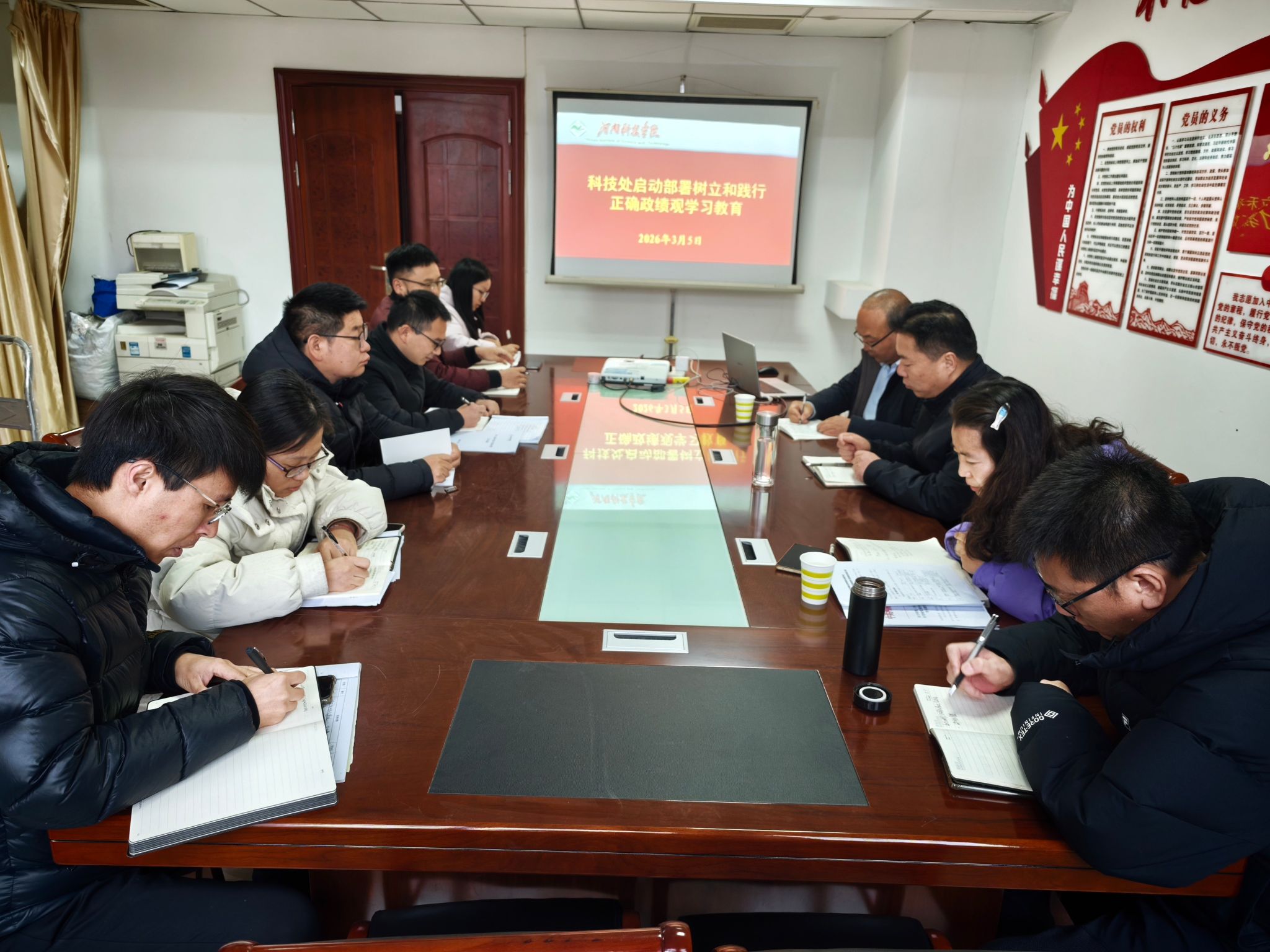 3月5日上午,科技处党支部在办公楼500会议室召开支部党员大会,部署树立和践行正确政绩观学习教育工作,副校长丁轲出席会议。科技处全体党员同志参会,会议由科技处党支部书记主持。